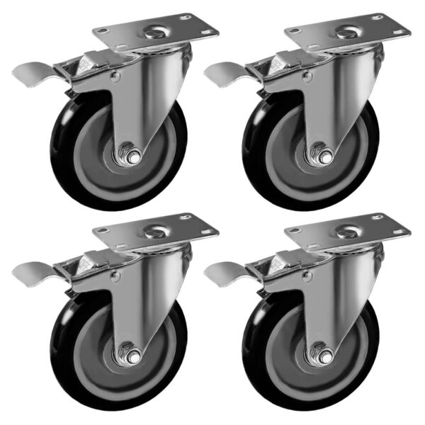 4 Pack 5 inch Black PU Swivel Caster With Brake