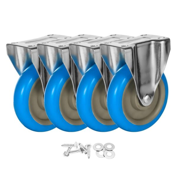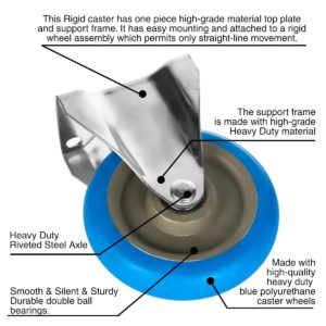 4 pack 5 inch Blue PU Non Swivel Fixed Rigid Caster with Hardware