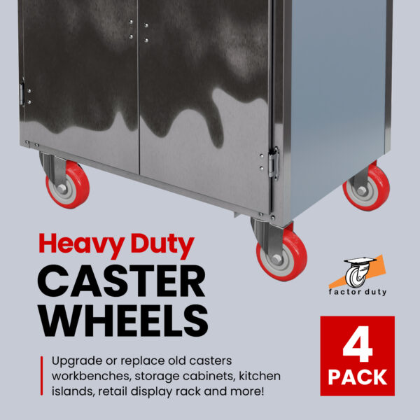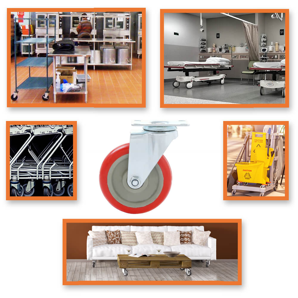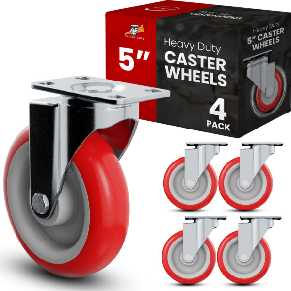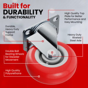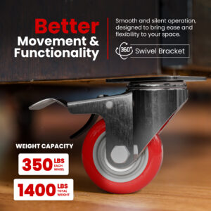 WHEEL MATERIALS AND PERFORMANCE: Heavy duty casters made of polyurethane wheels. COLOR: Red. Ball bearings: Double ball bearings. Premium Caster wheels are made of high quality polyurethane wheels with strong abrasion resistance, silent shock absorber, wearproof, no drag marks and enhance the impact resistance of the whole caster.
