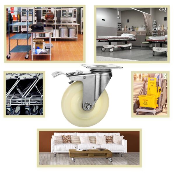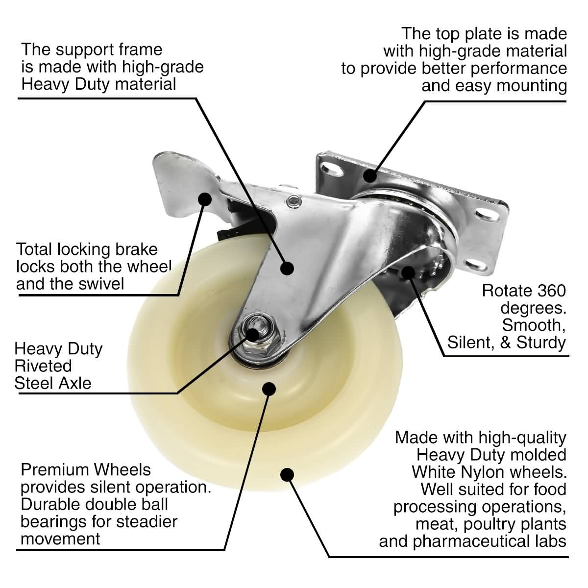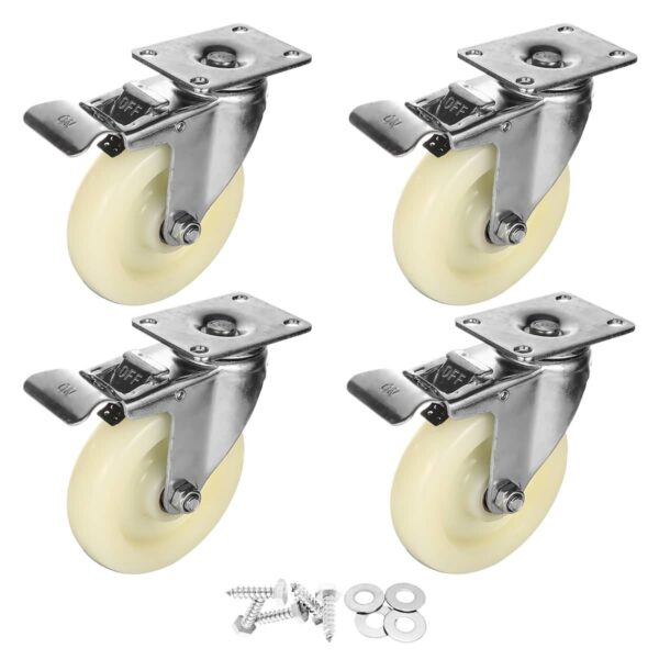 4 Pack 5 inch White Nylon Swivel Caster Brake With Hardware