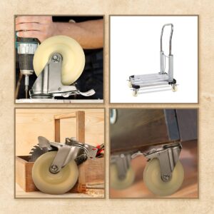 360-DEGREE MANEUVERABILITY: These molded from nylon caster wheels equiped with 360 degrees swivel bracket, the wheels can turn to any directions. Smooth and Silent and Sturdy. Capacity: 350lbs each wheel. Move the light furniture, table, cabinet and equipment to the destination more easily and flexibly.