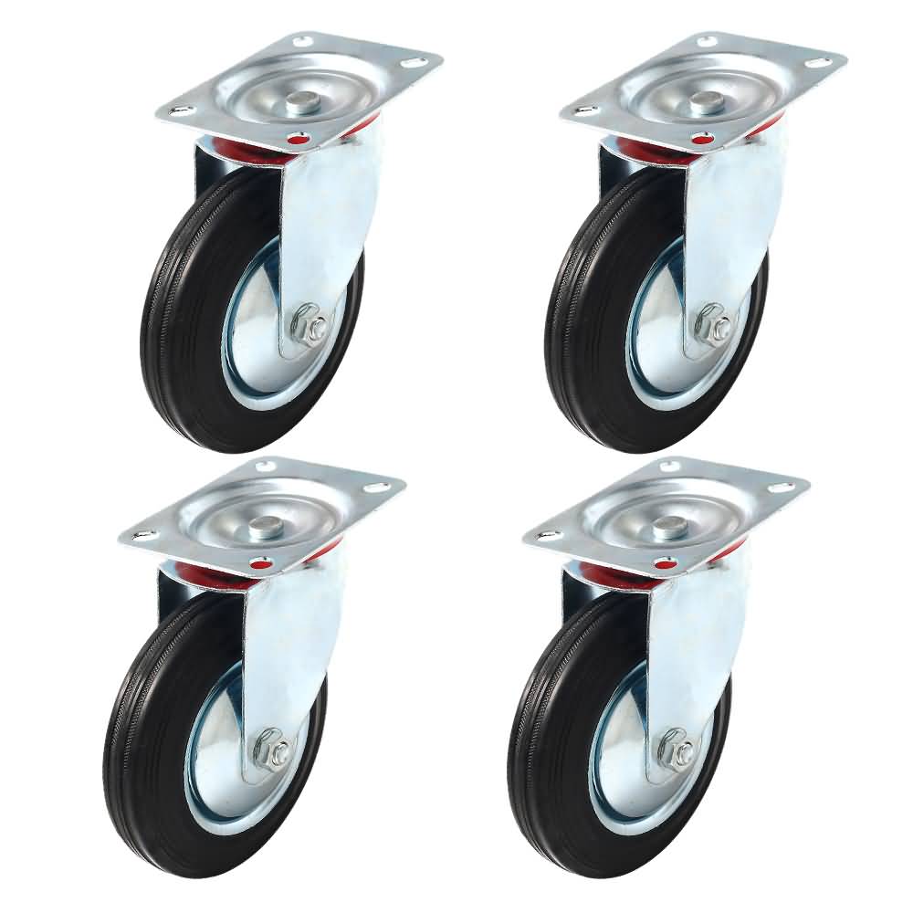 4 Pack 6 Inch Black Rubber Swivel Caster Wheel No Brake
