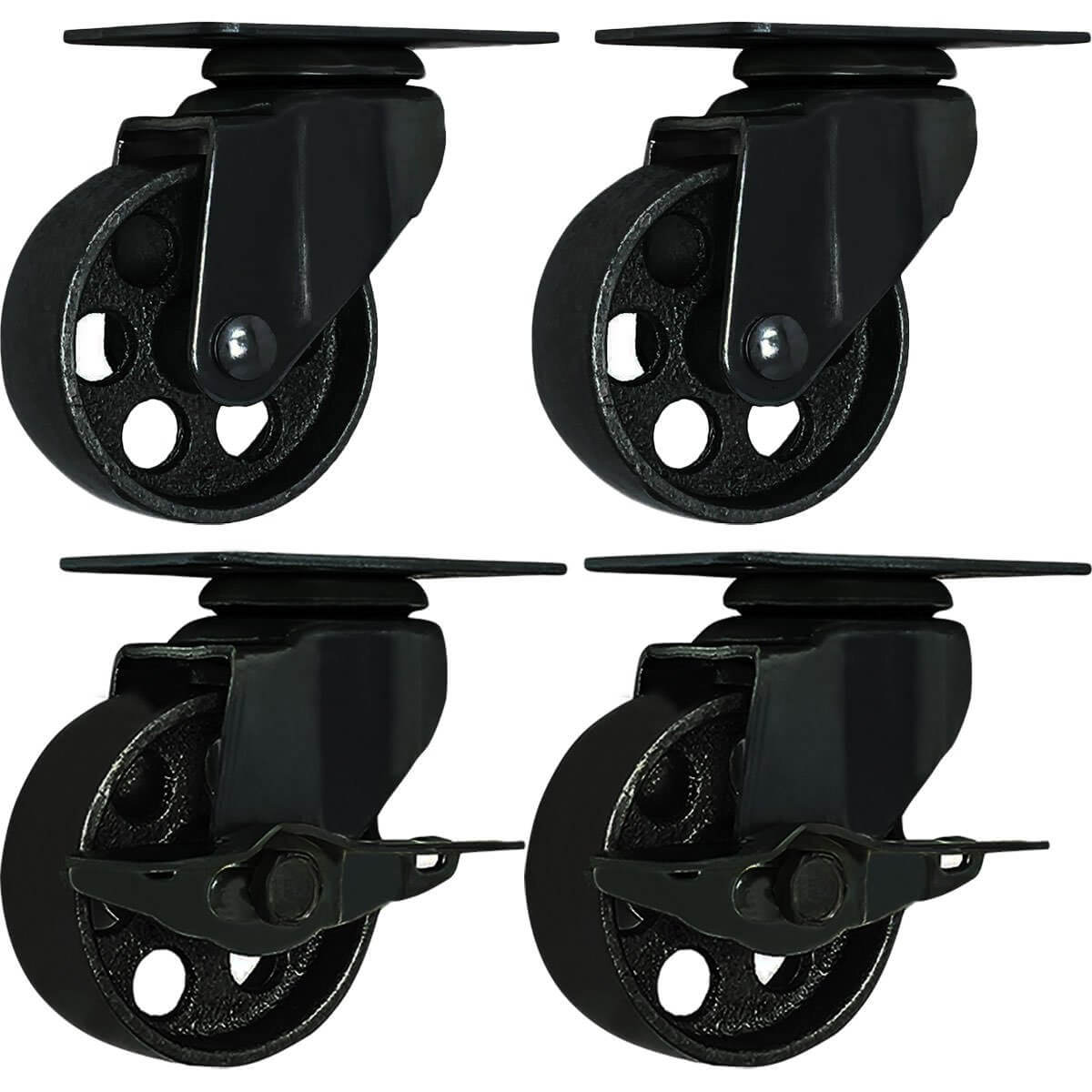 4 Pack Combo 3 Inch All Black Metal Swivel Wheel 2 No Brake & 2 With Brake