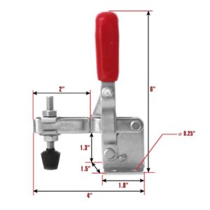 Introducing the Quick Release Vertical Toggle Clamp by FactorDuty. This clamp is an absolute must for any jig assembly, tool fixture or movable base. It features a vertical front mount push toggle design that provides an adjustable and secure hold, plus a quick release for many of your woodworking projects that require specific production clamping for drilling, welding or milling. Whether youre a professional or DIY type of person, some projects require that you handle clamps in a vertical position when space is an issue or horizontal clamps interfere.