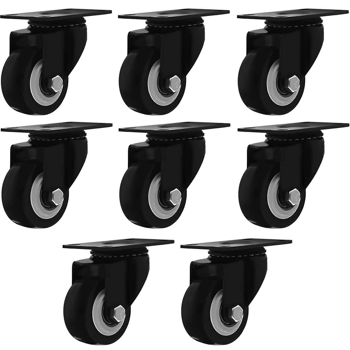 8 Pack 2.5 Inch All Black PU Swivel Caster No Brake
