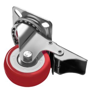 WHEEL MATERIALS AND PERFORMANCE: Heavy duty casters made of polyurethane wheels. COLOR: Red. Ball bearings: Double ball bearings. Premium Caster wheels are made of high-quality polyurethane wheels with strong abrasion resistance, silent shock absorber, wearproof, no drag marks and enhance the impact resistance of the whole caster.