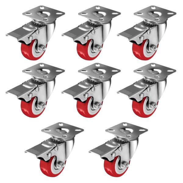 8 Pack 2 inch Red PU Swivel Caster With Brake