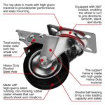 CASTERS ALL WITH DUAL LOCK BRAKE: This heavy duty dual locking brake can stop the wheel moving and stop the top plate swiveling simultaneously, dual lock is effective to prevent the device from moving, ensuring the safety of people and goods at any time and at any angle.