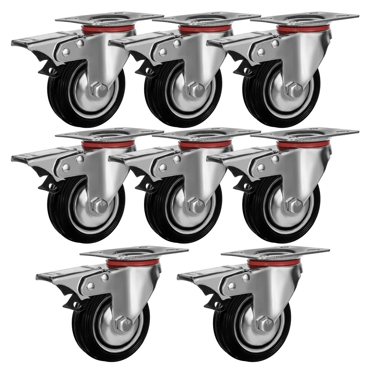 8 Pack 3 Inch Rubber Base Swivel Caster Wheels With Brake