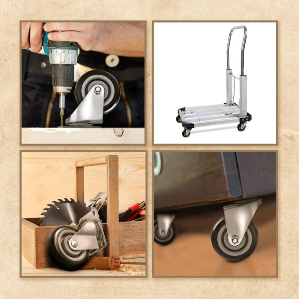 360-DEGREE MANEUVERABILITY: These polyurethane caster wheels equipped with 360 degrees swivel bracket, the wheels can turn to any directions. Smooth and Silent and Sturdy. Capacity: 300lbs each wheel. Move the light furniture, table, cabinet and equipment to the destination more easily and flexibly.