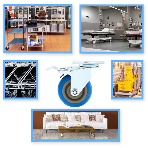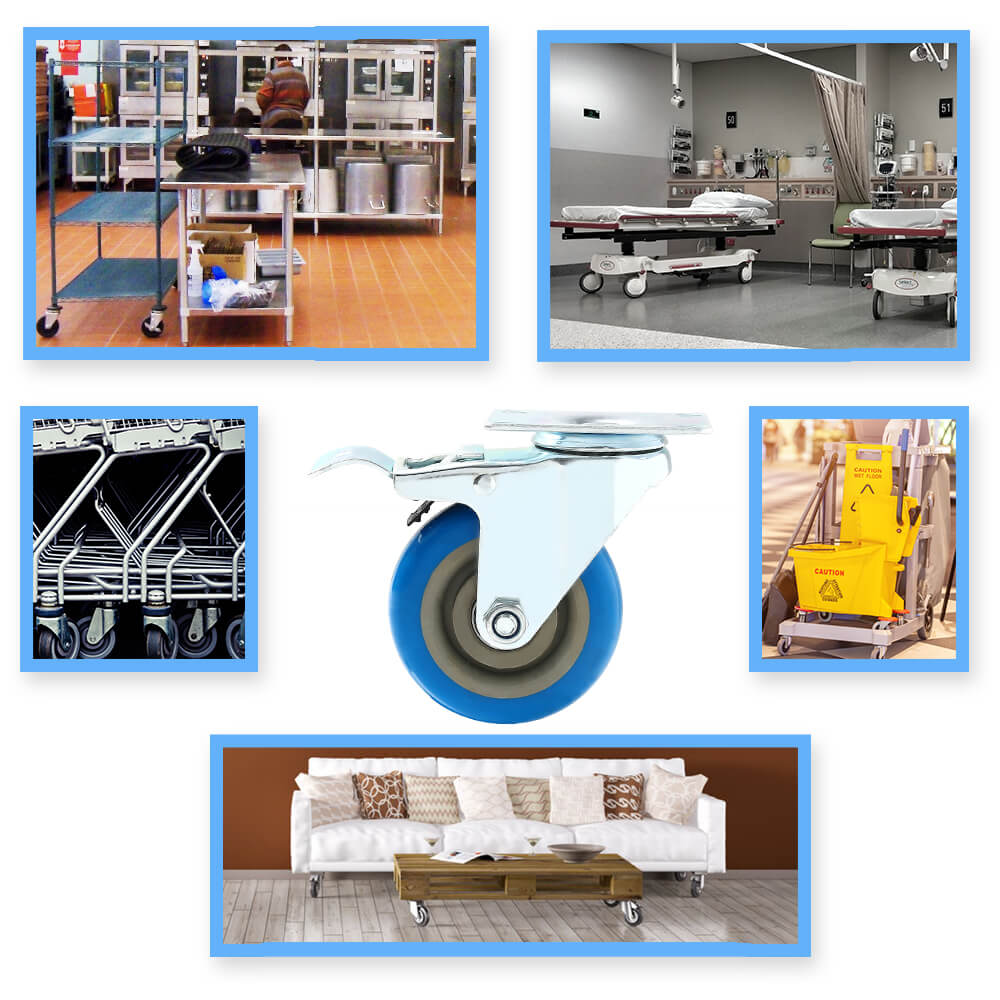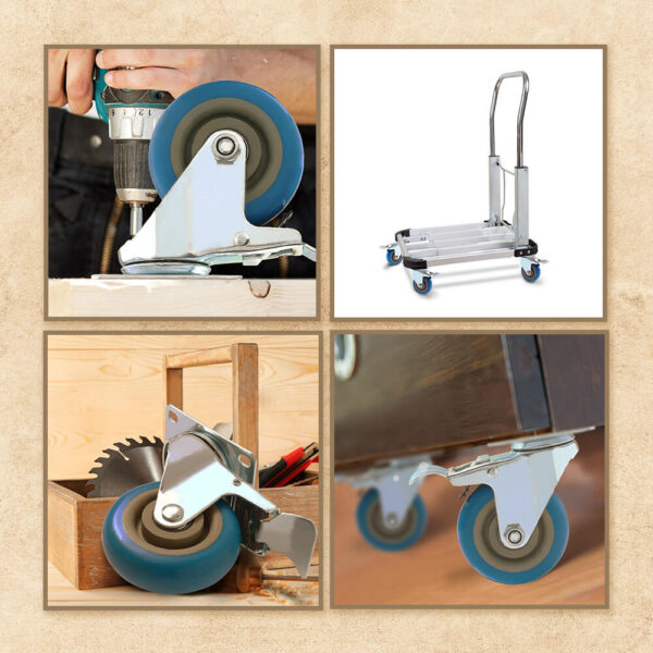 WHEEL MATERIALS AND PERFORMANCE: Heavy duty casters made of polyurethane wheels. COLOR: Blue. Ball bearings: Double ball bearings. Premium Caster wheels are made of high quality polyurethane wheels with strong abrasion resistance, silent shock absorber, wearproof, no drag marks and enhance the impact resistance of the whole caster.