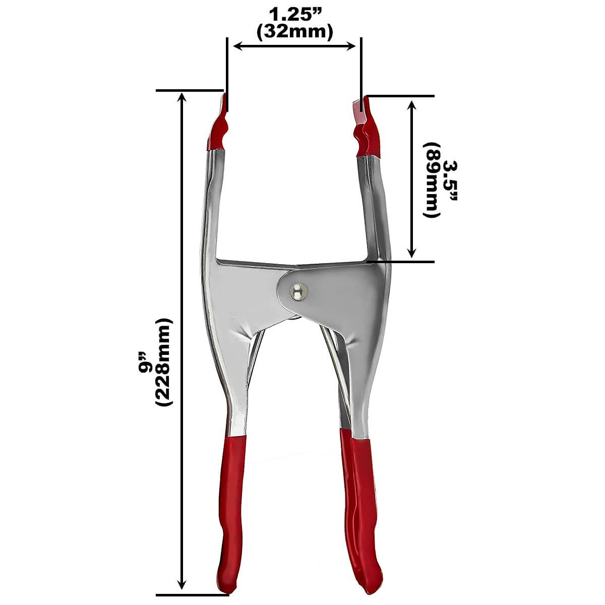 - HEAVY DUTY: Super Size Clamps, boasting a remarkable 3.5-inch (89mm) jaw capacity, 9-inch (228mm) overall length, and a substantial 4-inch (101.6mm) width, all designed to ensure a firm grip, while the PVC-coated red tips and handles provide added durability for your most demanding tasks.