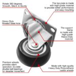 WHEEL MATERIALS AND PERFORMANCE: Heavy duty casters made of polyurethane wheels. COLOR: Black. Ball bearings: Double ball bearings. Premium Caster wheels are made of high quality polyurethane wheels with strong abrasion resistance, silent shock absorber, wearproof, no drag marks and enhance the impact resistance of the whole caster.